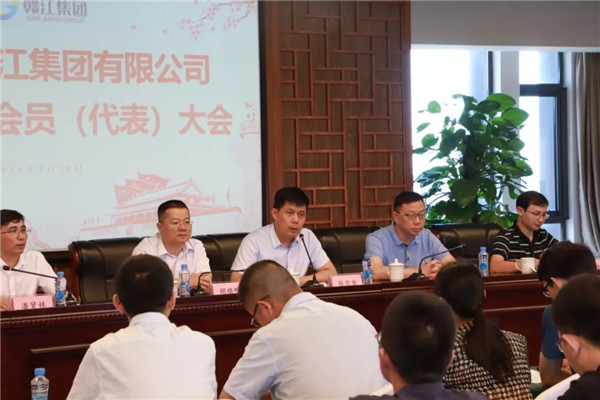 2019年7月30日上午,赣江集团有限公司工会成立暨第一次会员(代表)大会在新区管委会六楼会议室隆重召开。省总工会第十四届委员会委员、新区工会联合会副主席张宗金,新区工会联合会办公室主任、党群工作部组织群团处处长陈金富,集团党委书记、董事长胡顺明,集团党委委员、副总经理潘贤林、熊农、熊爱华出席会议,集团全体工会会员参加会议。